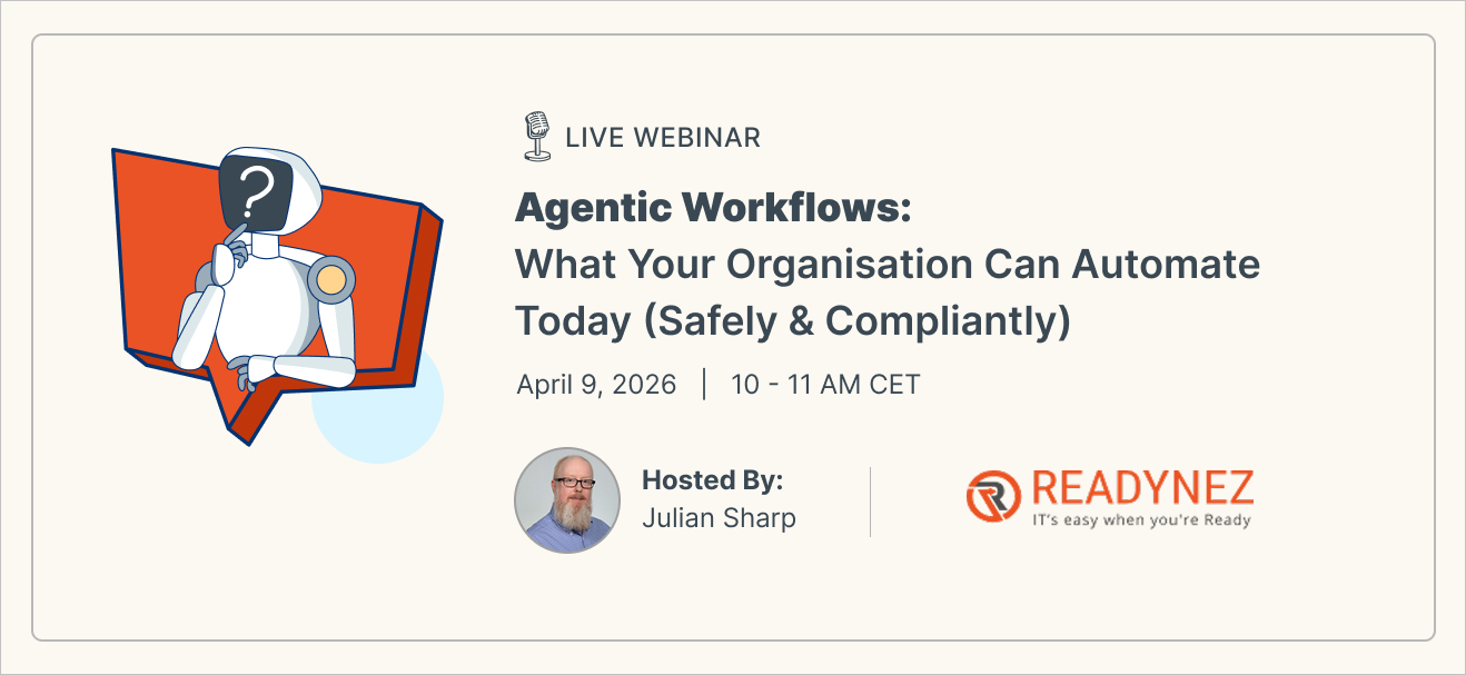 In this webinar, we’ll introduce agentic workflows and how they streamline repetitive, cross system tasks using secure, policy aligned automation. You’ll learn what your organisation can safely automate today to boost efficiency and reduce operational risk. We’ll explore how AI-driven agents are transforming real world productivity. Today, we’ll show what your organisation can safely and compliantly automate right now to unlock immediate value.